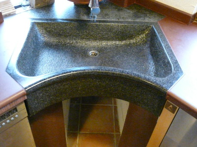 Spülbecken, massiv hergestellt. Material:Nero Impala