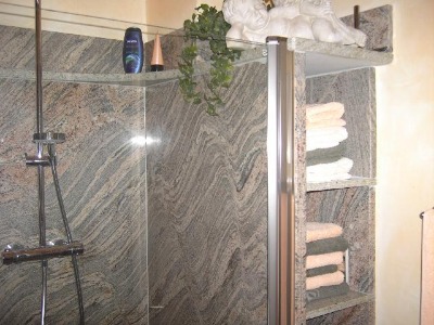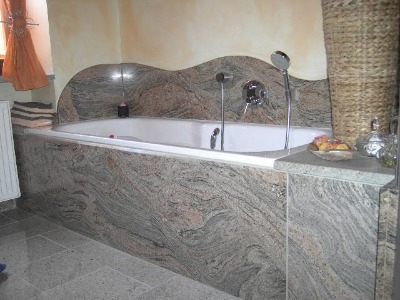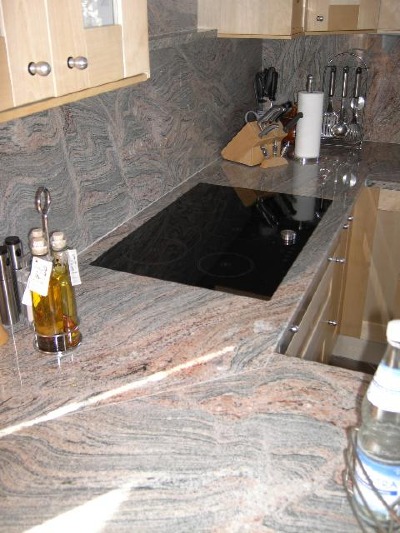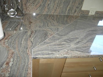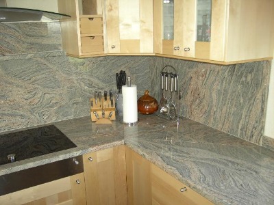 Küchenarbeitsplatte mit Wandverkleidung, Juparana