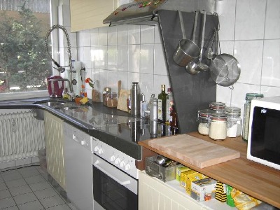 Küchenarbeitsplatte, Granit in Sandstein eingefaßt